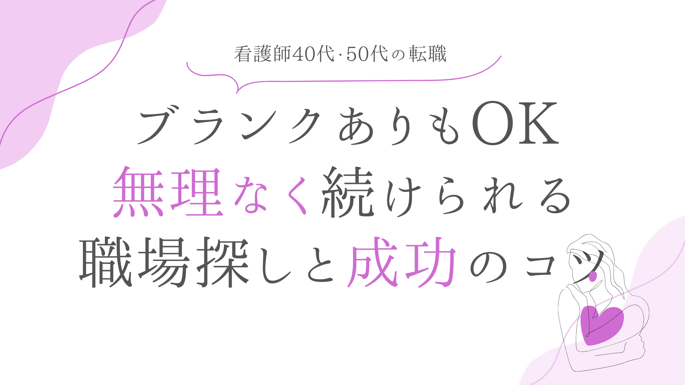 40代・50代で転職を考える看護師は少なくありません。「もう遅いのでは?」「ブランクがあると難しいのでは?」と不安になる方も多いですが、実際には経験豊富な人材を求める医療機関は数多く存在します。