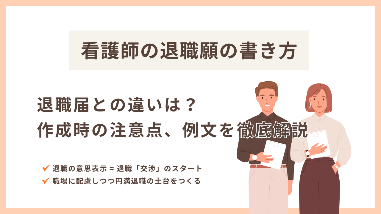 病棟勤務・訪問看護・非常勤など立場別の書き方も紹介しますので、安心して退職手続きを進めたい方におすすめの内容です。