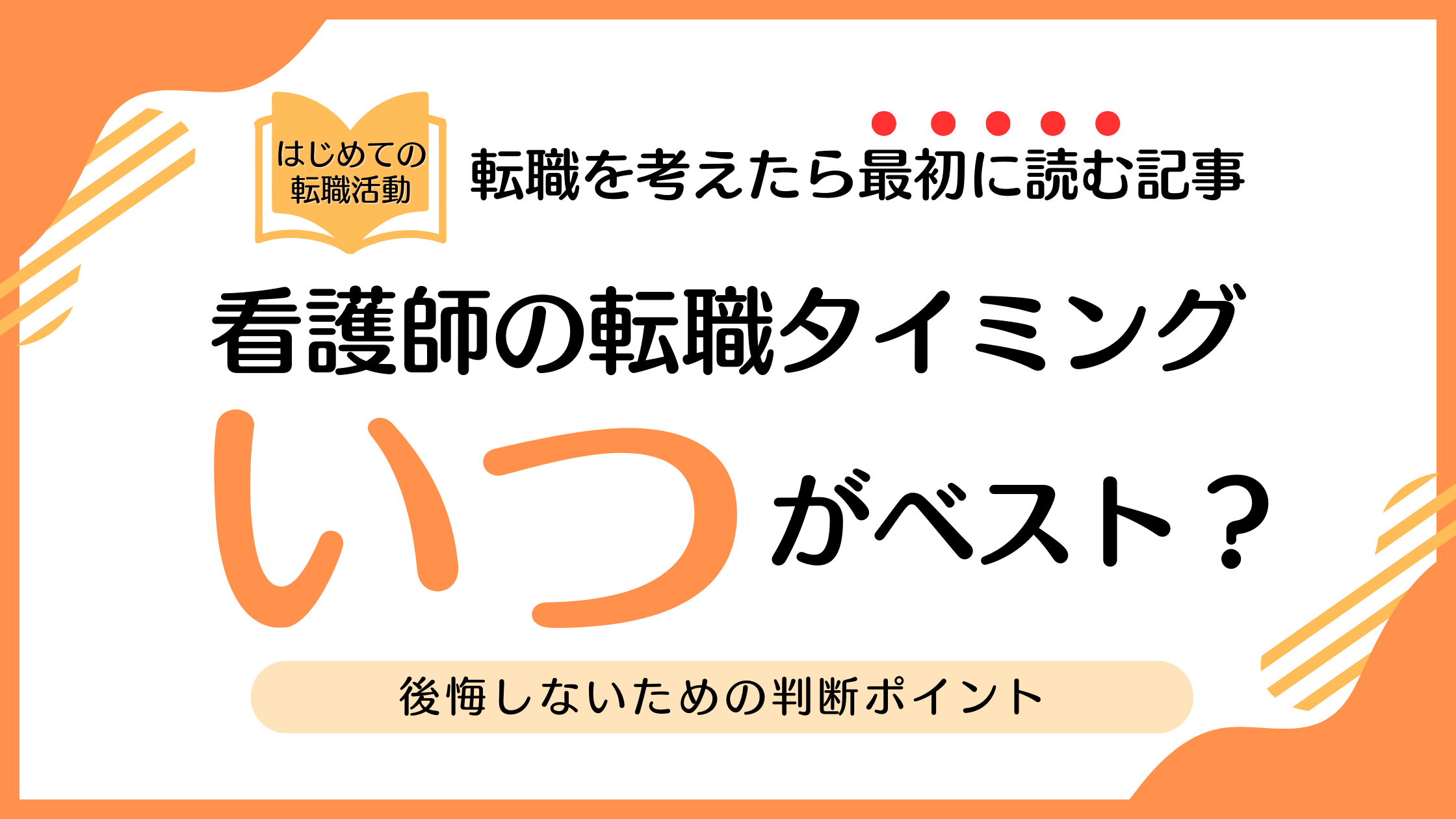 この記事では、看護師の転職タイミングを「年齢・経験・ライフイベント・職場環境」の4つの視点から解説し、自分にとって最適な動き出し方を見つけるお手伝いをします。